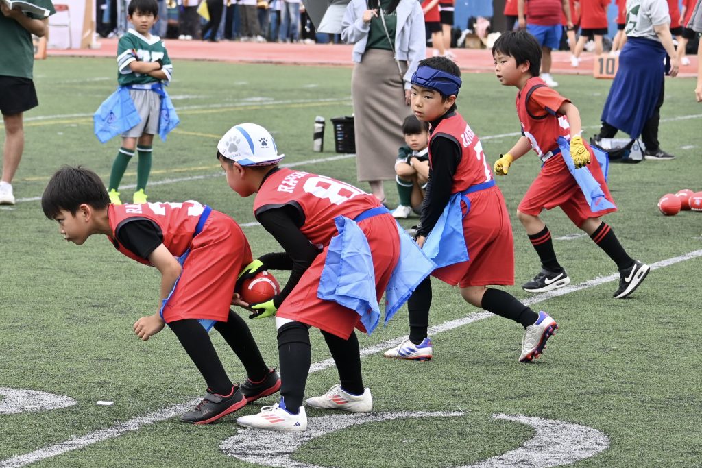 「タックル」の代わりに、プレーヤーの両腰につけた「フラッグ」を取ることから「フラッグフットボール」という名前になりました。